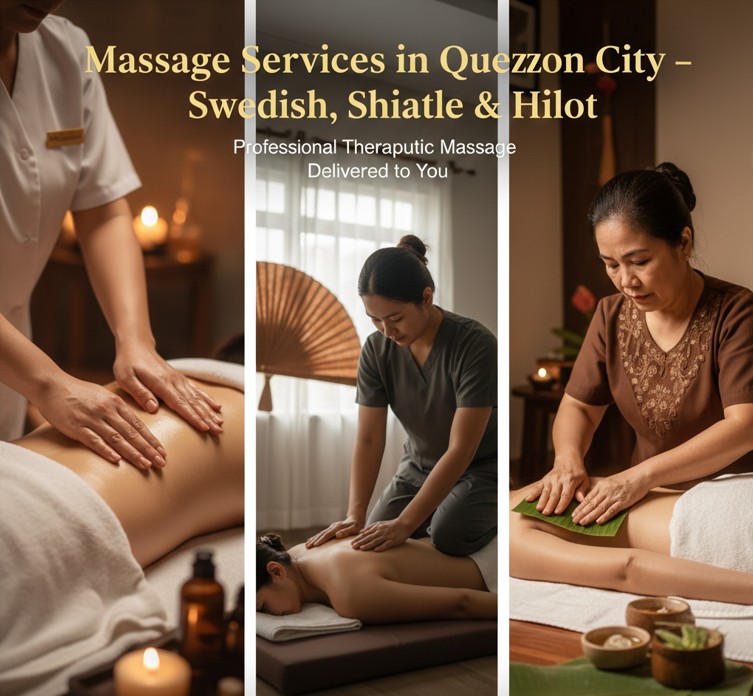 Massage services in Quezon City include Swedish relaxation massage, Shiatsu pressure therapy, and traditional Hilot healing delivered by certified therapists at homes, hotels, and condominiums. Our on-call spa service provides professional therapeutic massage with full equipment setup and hygienic standards.